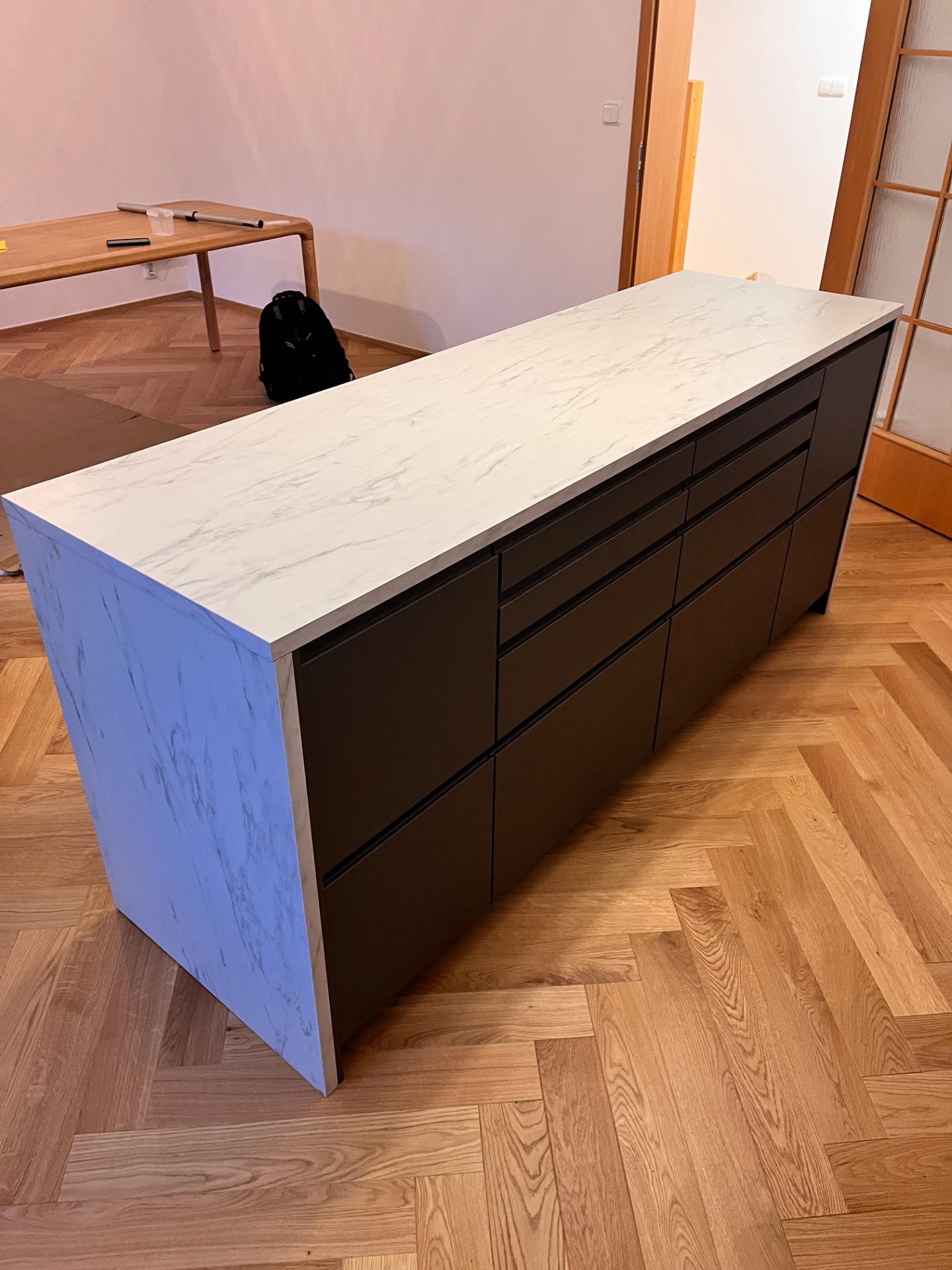 (kompletní montáž ostrůvku a částí kuchyně k jejímu plnému užívání)