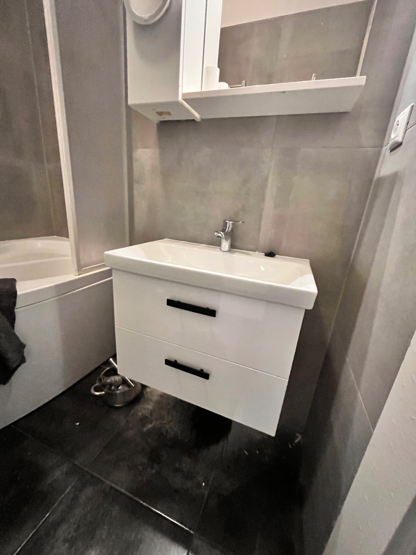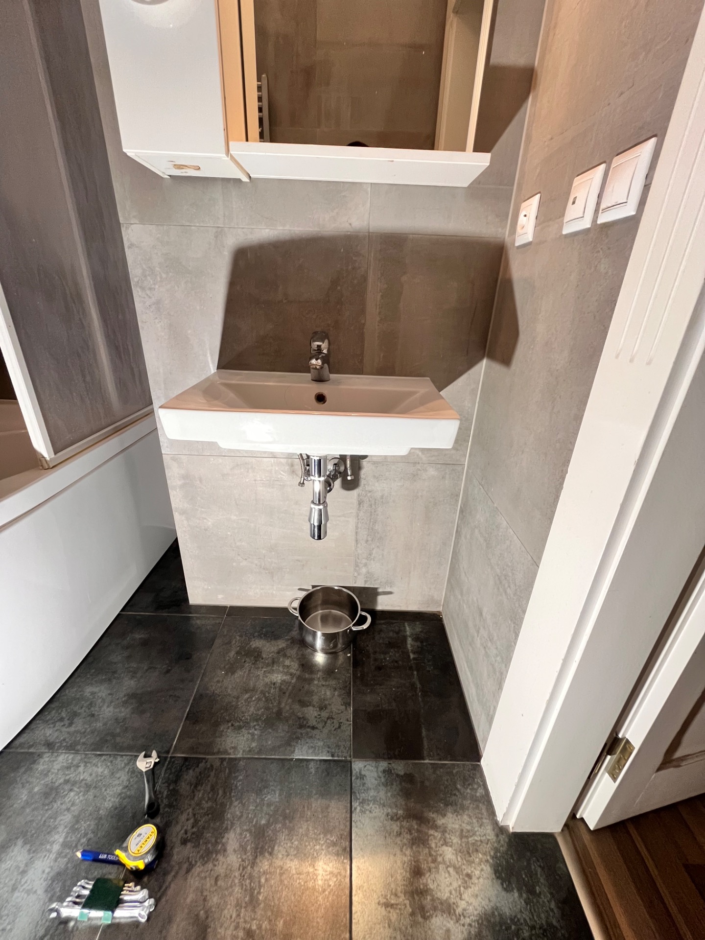 Výměna závěsného umyvadla za skříňku s umyvadlem.